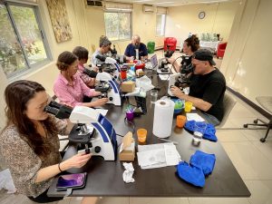 Students and mentors practice microscopy together at our workshop in Costa Rica, March 2025.